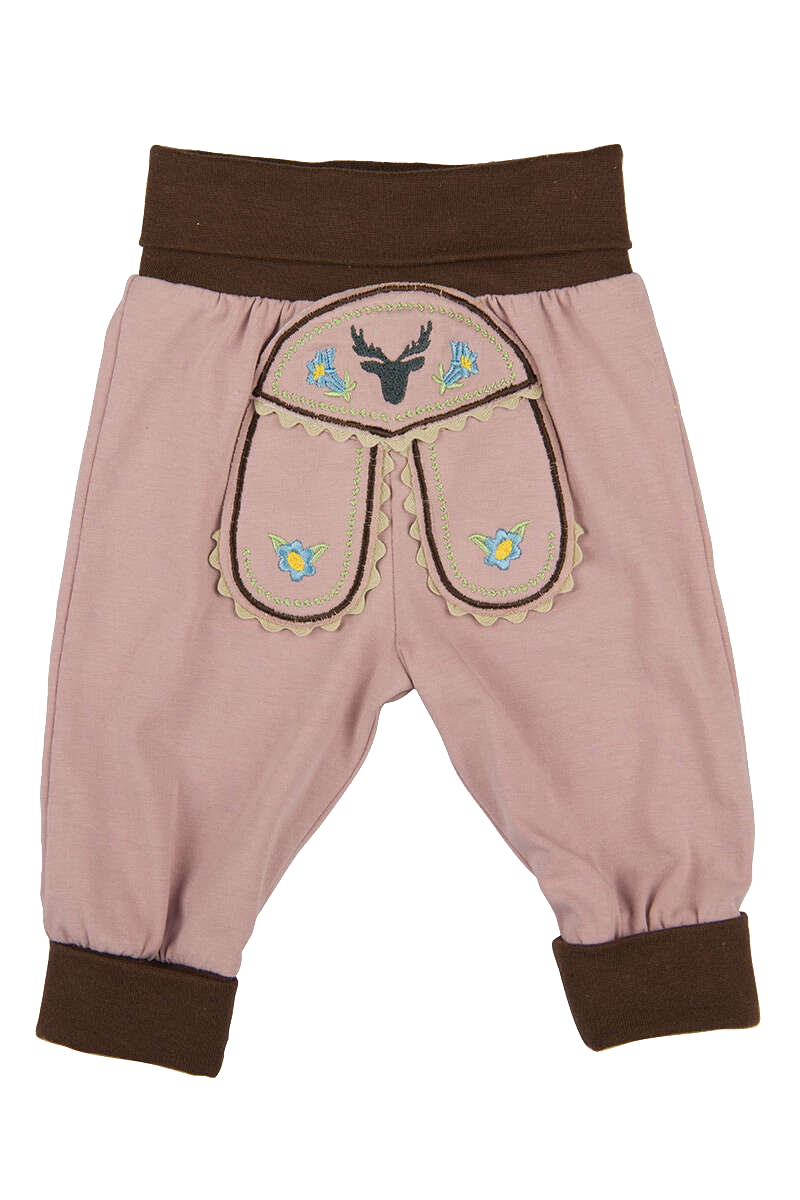 • Rosa Schlupfhose im Lederhosen-Stil für kleine Trachtenfans.