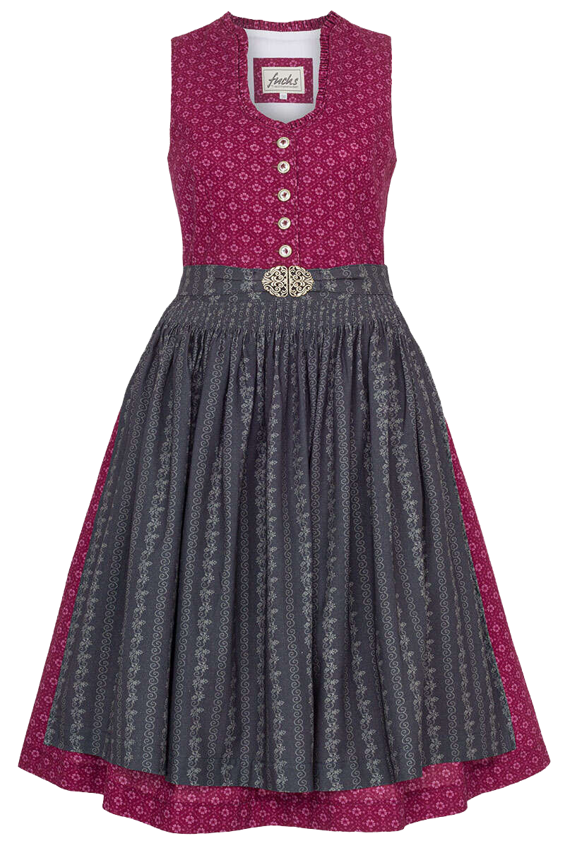 • Ein romantisches Midi-Dirndl der Firma Fuchs in bordeaux und anthrazit