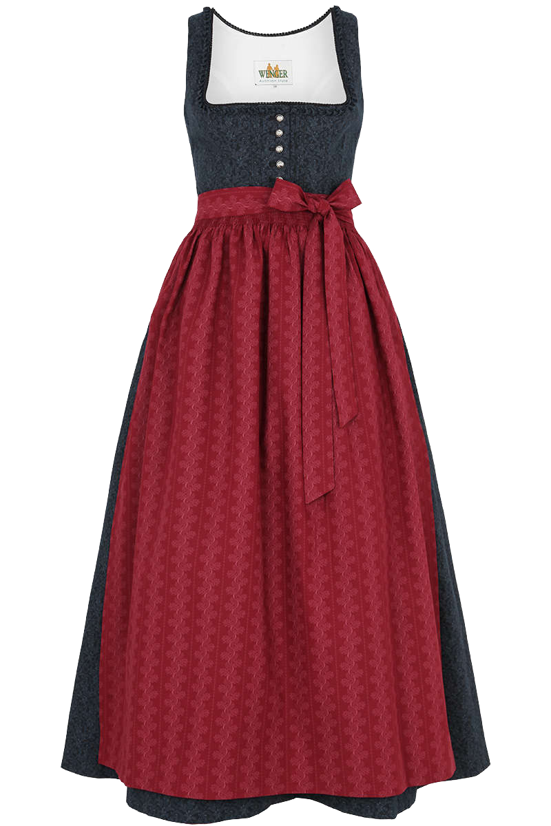 • Dirndlkleid in kräftigem, dunklem Blau, Schürze dunkelrot
