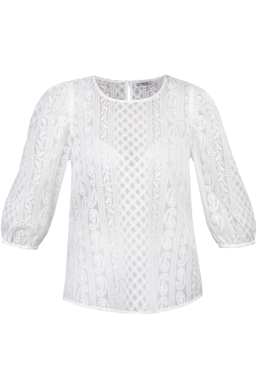 Trachten-Bluse transparent bestickt mit weitem Arm