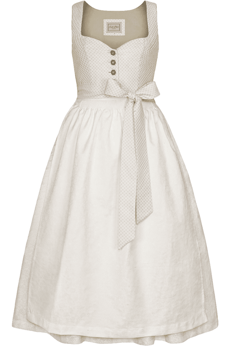 • Romantisches Design: Brautdirndl KATHI von Emilia Deiser in Offwhite mit herzförmigem Ausschnitt und eleganten Details für einen stilvollen, romantischen Look.