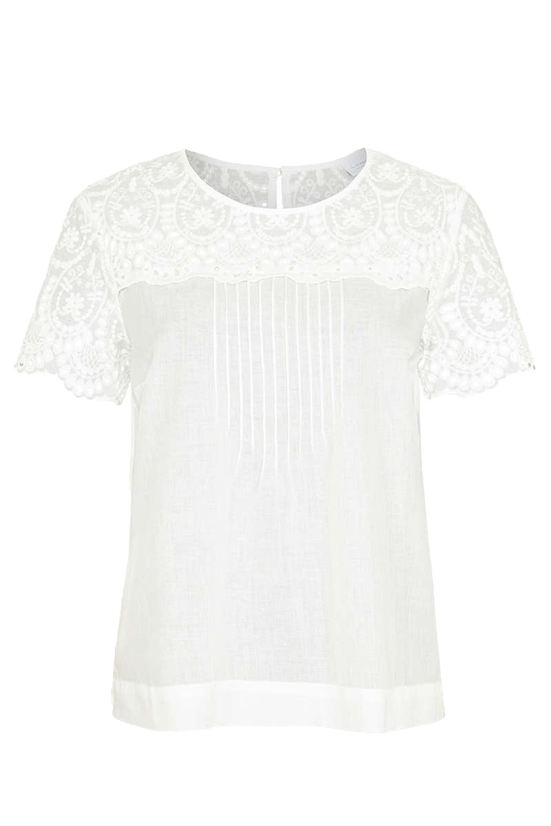 Damen Trachten Baumwollbluse mit Spitzeneinsatz