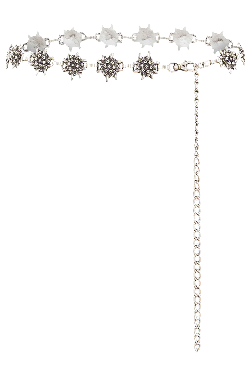 • Ein nostalgischer Kettengürtel in antiker Silberoptik mit Edelweißblüten