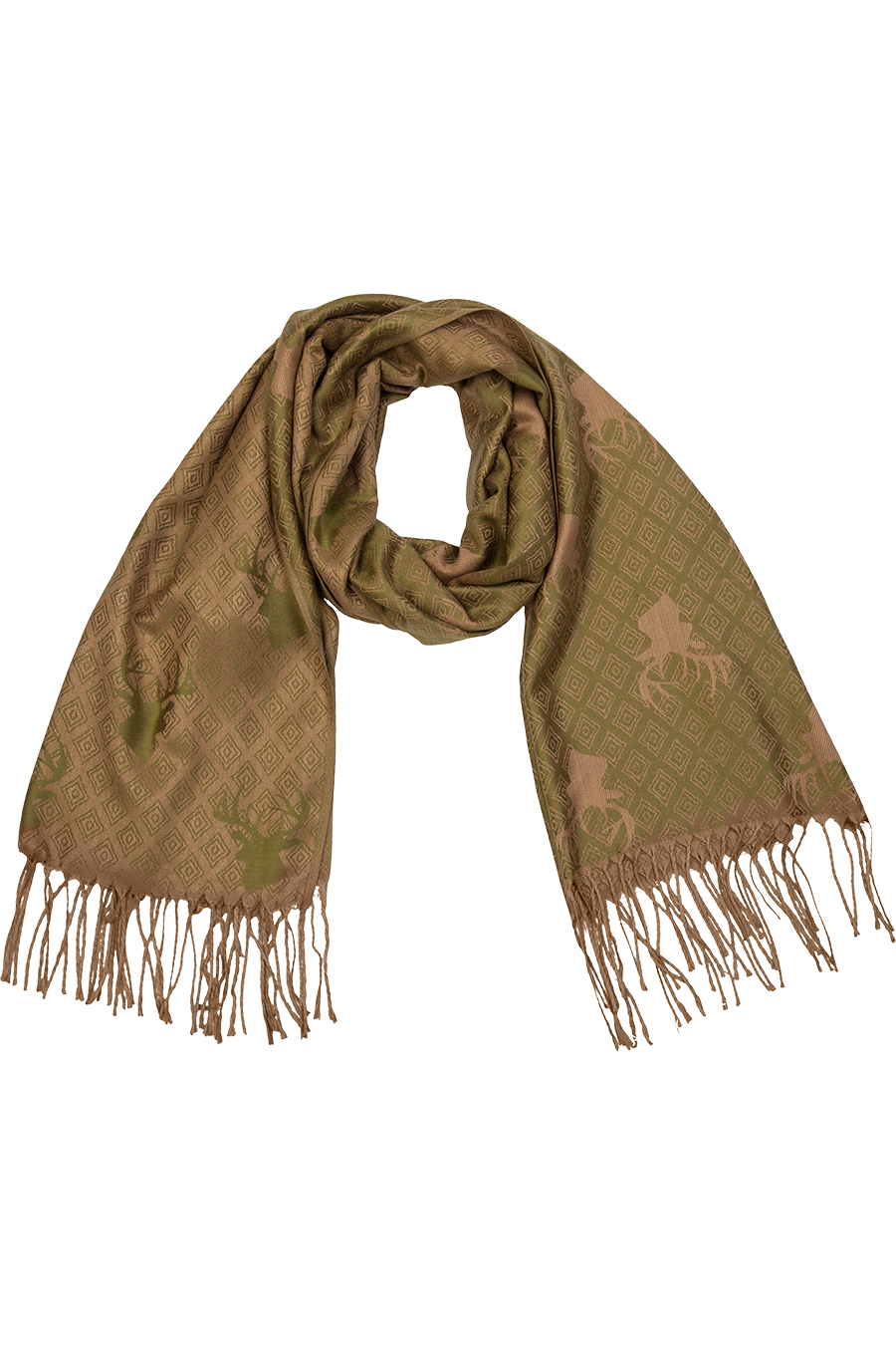Damen Trachtentuch mit Hirschmuster und Fransen