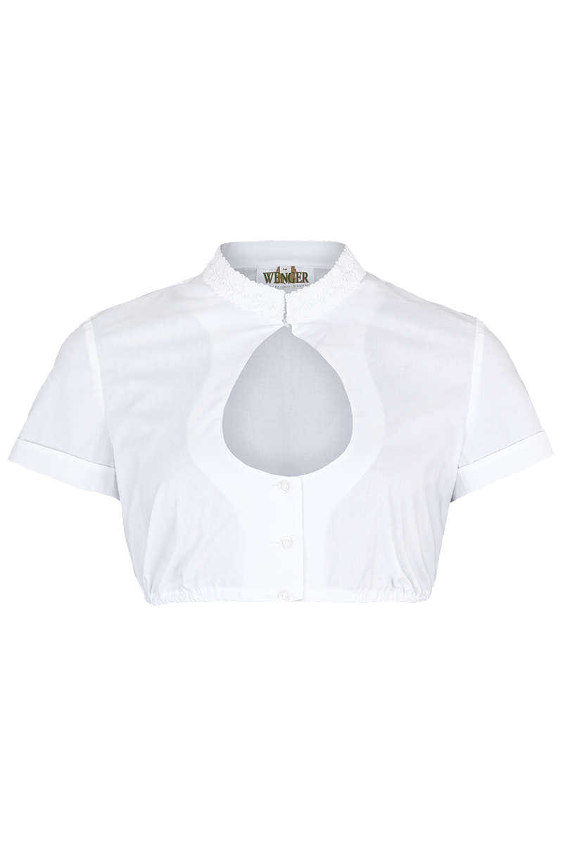 • Christine ist eine raffiniert geschnittene weiße Dirndlbluse mit ovalem Ausschnitt