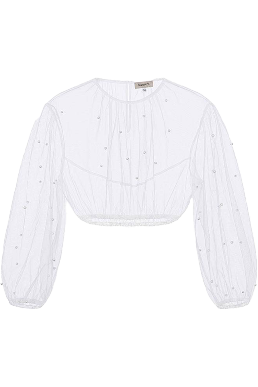 Dirndlbluse aus transparentem Tüll mit Perlen