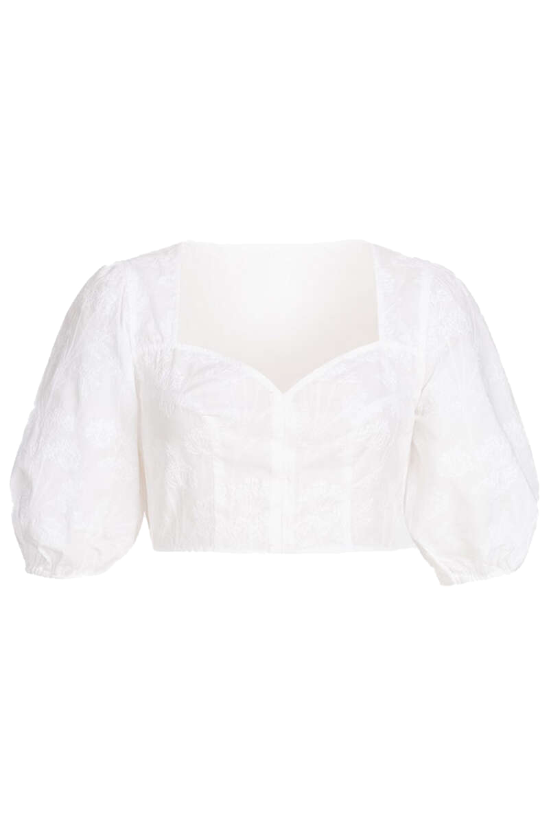 • Romantischer herzförmiger Ausschnitt: Der herzförmige Ausschnitt verleiht der Bluse eine romantische Note, die durch das mit Blumen bestickte Muster noch verstärkt wird.