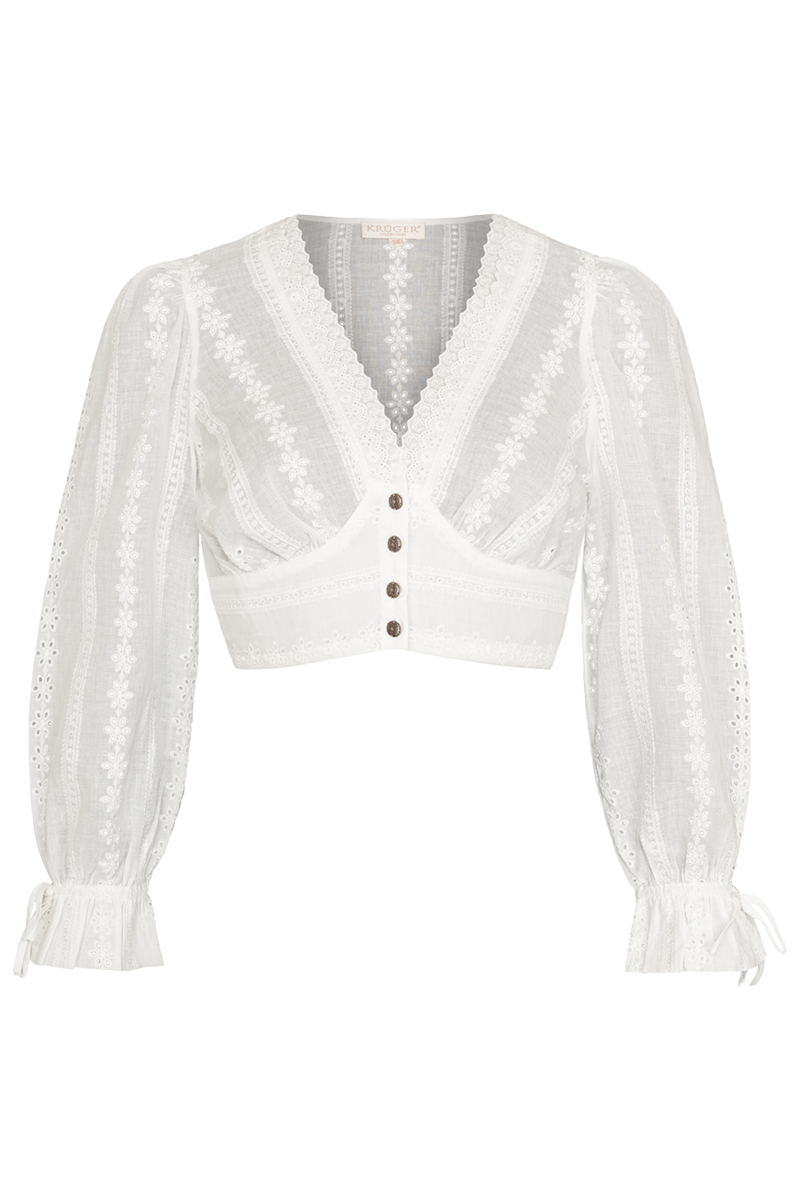 Dirndlbluse mit weiten Ärmeln und Lochmuster