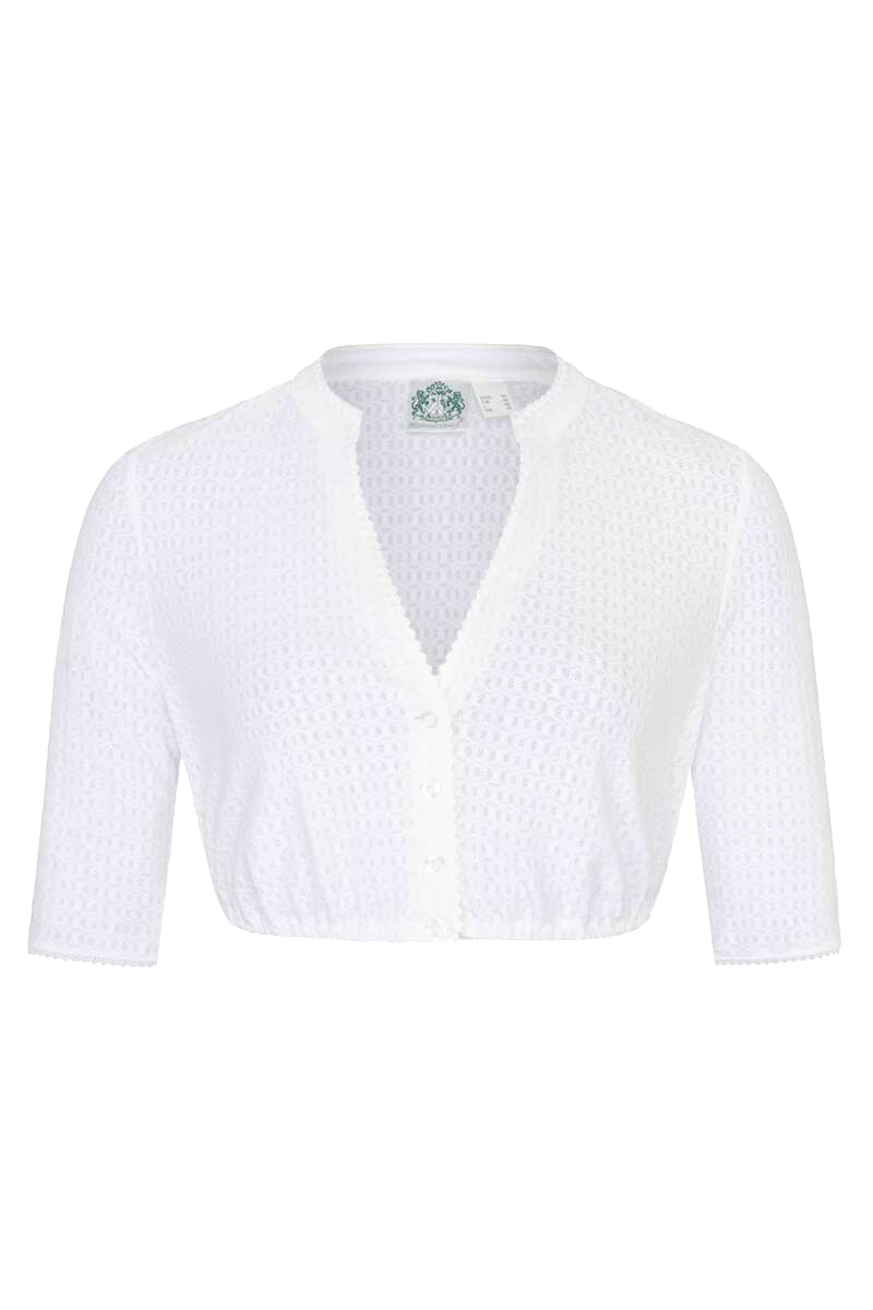 • Weiße Dirndlbluse von Hammerschmid mit halblangen Ärmeln und schönem Stehkragen.