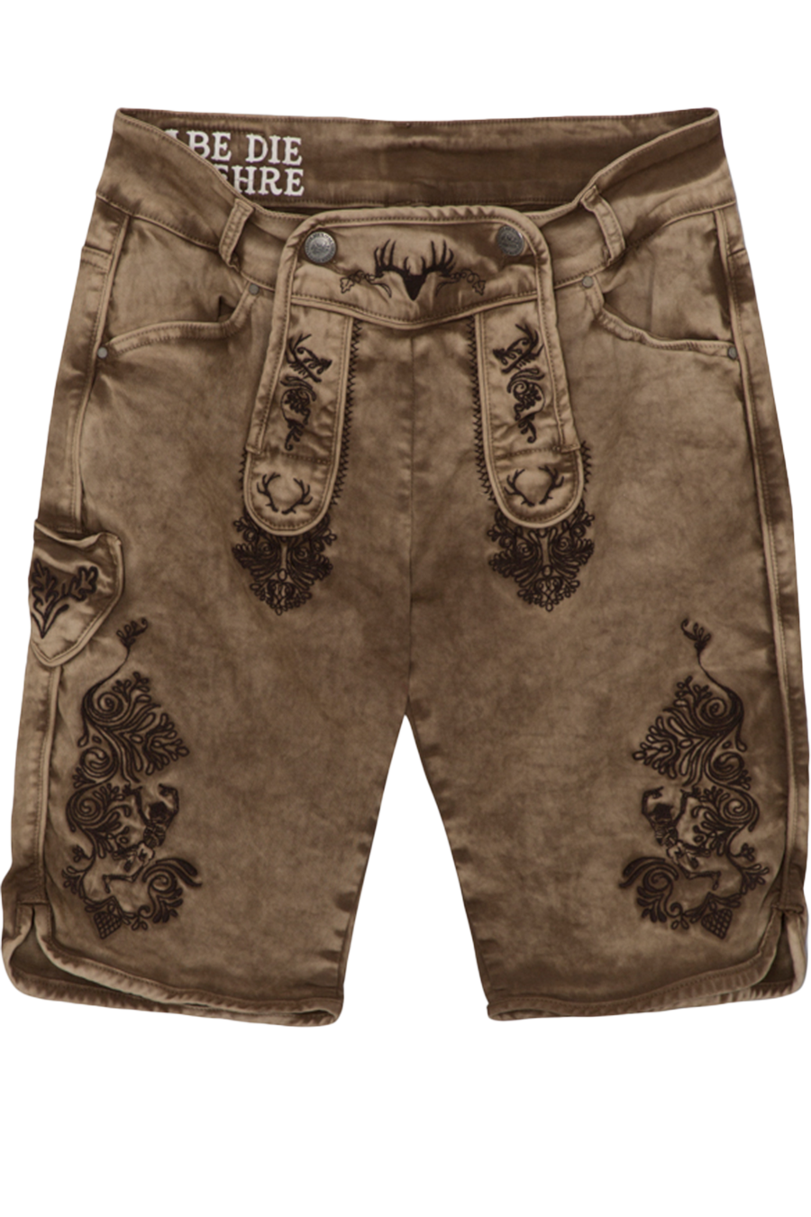 Herren Jeansbermuda 'Lederhosenlook' bestickt