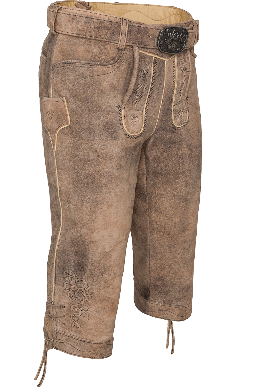 Herren Lederhose Kniebund bestickt mit Gürtel