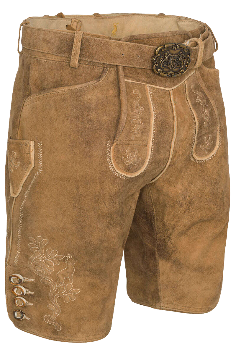 • Kurze hellbraune Trachten-Lederhose aus hochwertigem Wild-Bock-Leder (männliche Ziege)