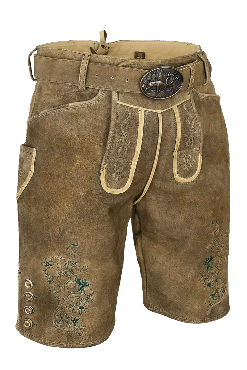 • Kurze hellbraune Trachten-Lederhose aus hochwertigem Wild-Bock-Leder (männliche Ziege)
