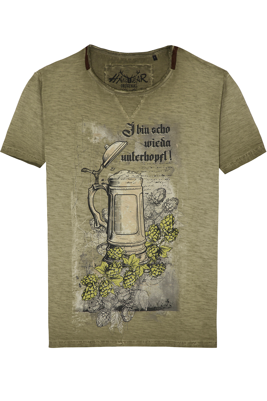 Herren Shirt Biermotiv 'I bin scho wieda unterhopft'