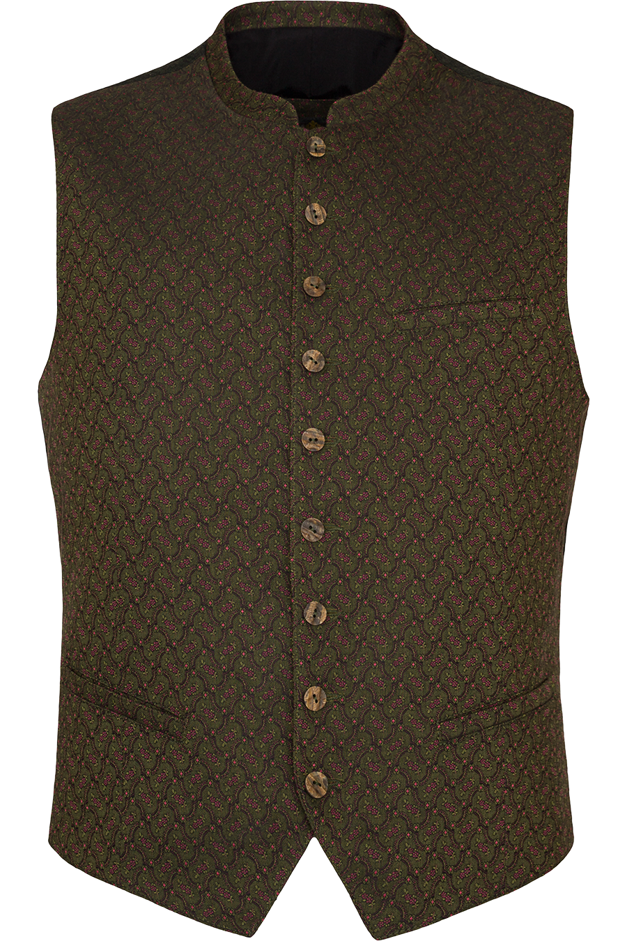 • Moderner Trachtenstil: Slim-Fit Weste OSCAR von Hammerschmid mit feinem Punkt- und floralem Muster auf der Vorderseite.