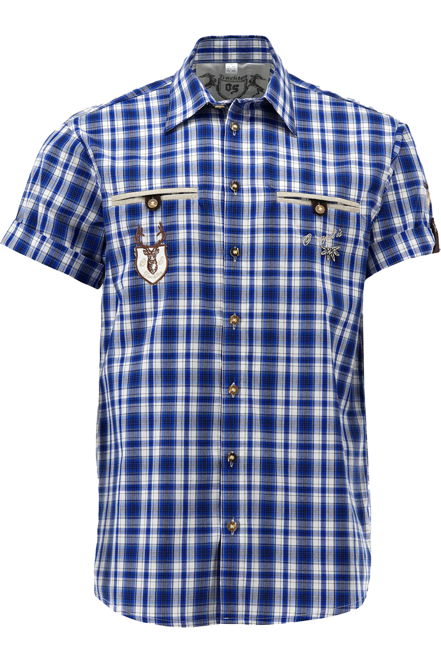 • Liebe zum Detail: Brusttaschen mit Hirschkopf-Patch, „O’zapft is’“-Stickerei und Edelweiß-Metallannäher.