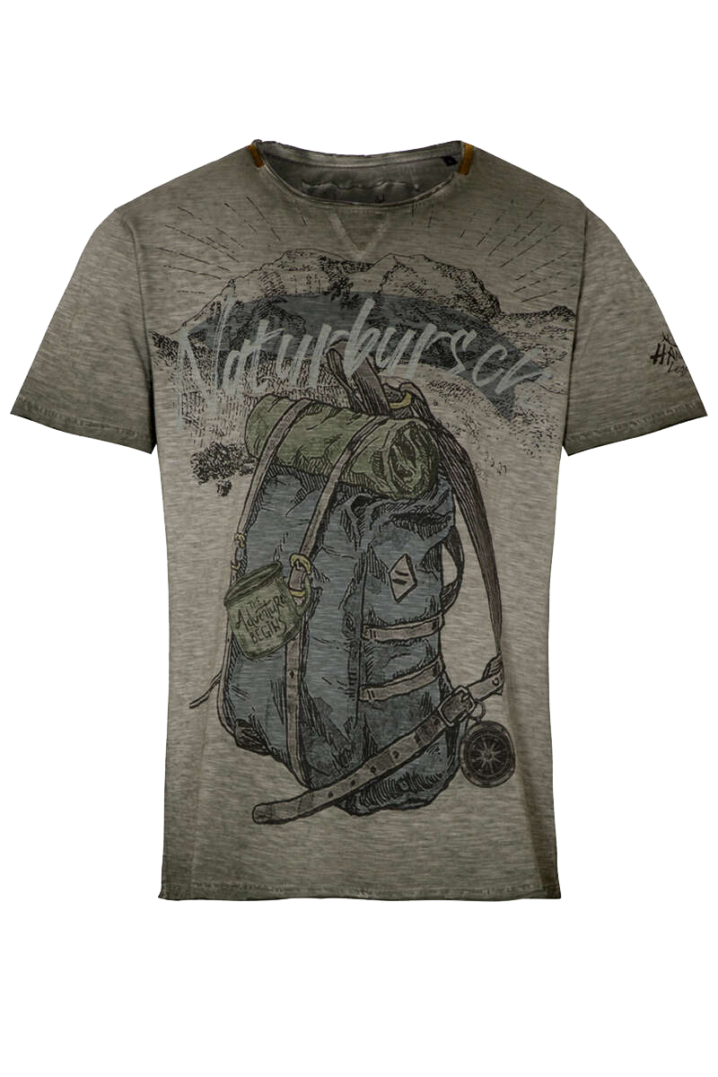 • Pures Abenteuer: Das Shirt ist mit einem Aufdruck eines großen Rucksacks inmitten von Bergen und der Aufschrift "Naturbursche" versehen, was den Abenteuergeist seines Trägers darstellt ;-)