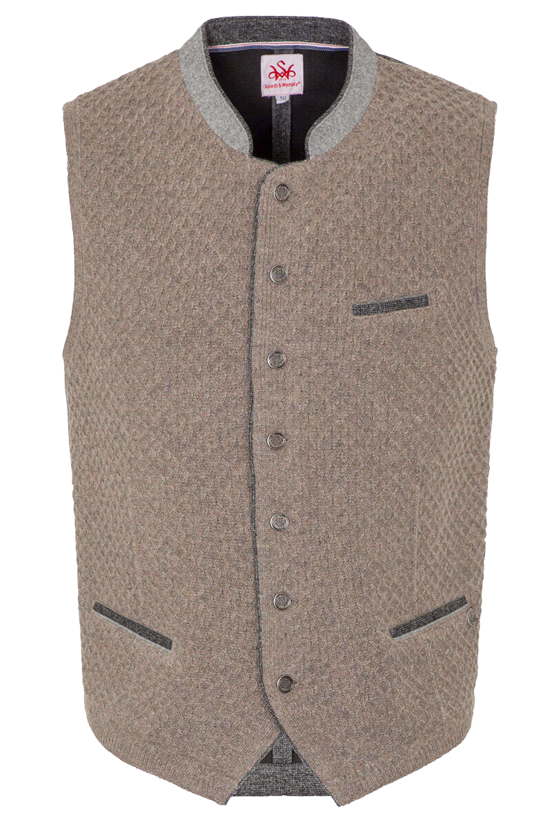 • WISAM von Spieth&Wensky ist eine außergewöhnliche nussbraune Herren-Trachtenweste mit gestrickter Vorderseite