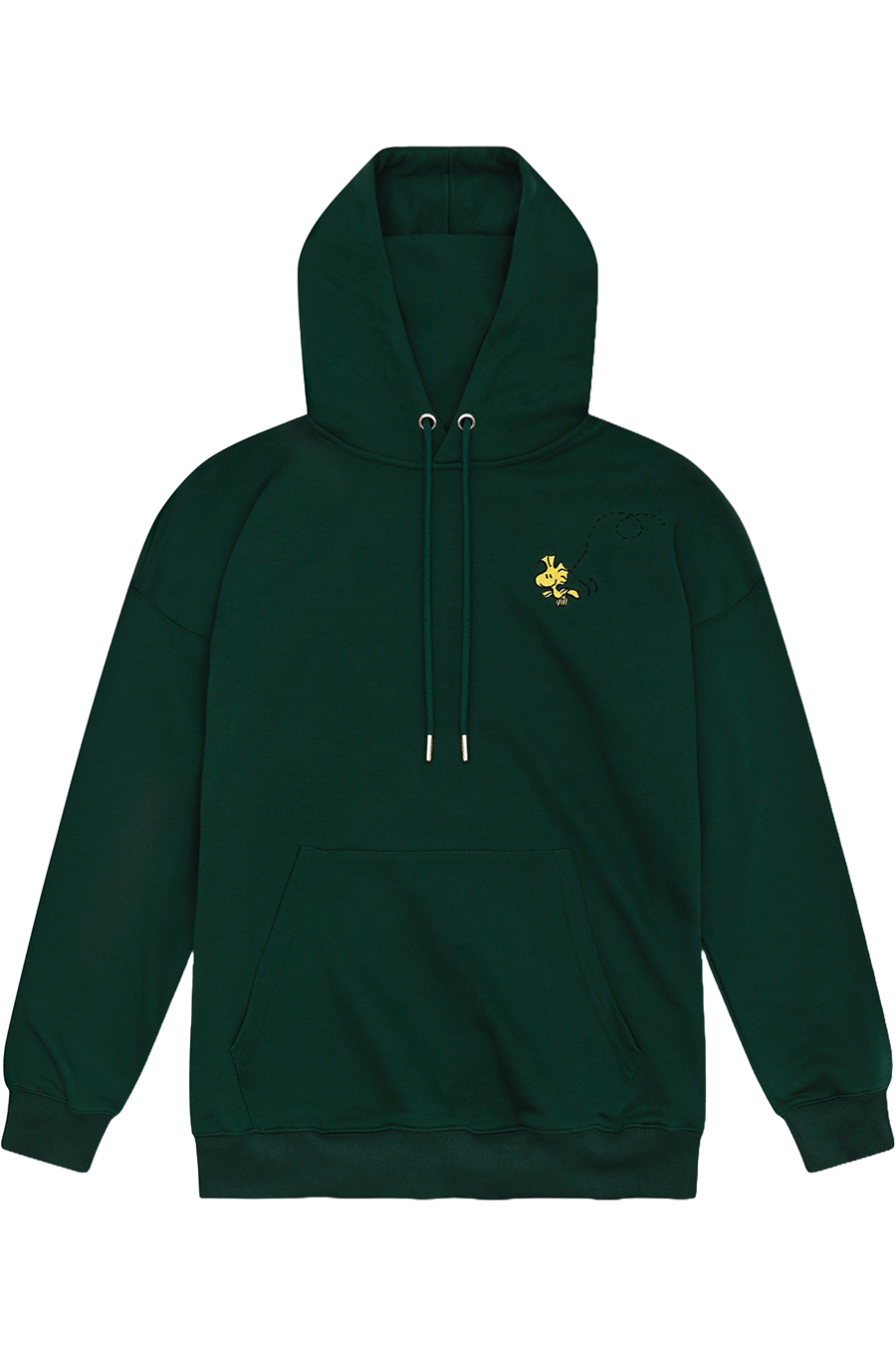 • Hochwertige Details — vorne feine Woodstock-Stickerei, hinten Snoopy-Print mit „Ned mit mir“.