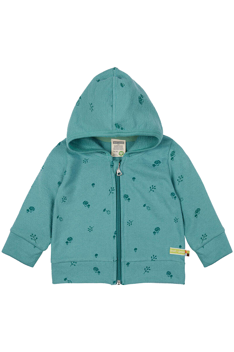 • Hübsches türkisgrünes Baby- und Kleinkinder-Jäckchen mit Reißverschluss und Kapuze aus 100% GOTS-zertifizierter Baumwolle