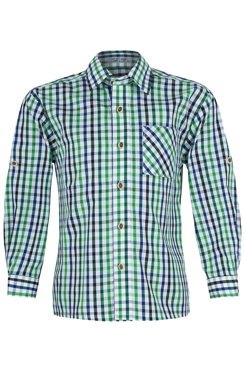 • Das Trachtenhemd ist mit einem Liegekragen ausgestattet