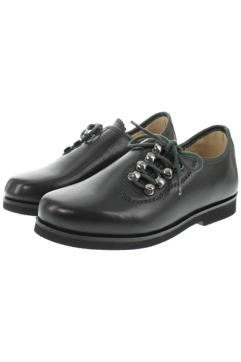 • FRANZL ist ein klassischer schwarzer Kinder-Haferlschuh der Marke Xaver Luis mit dunkelgrünen Details