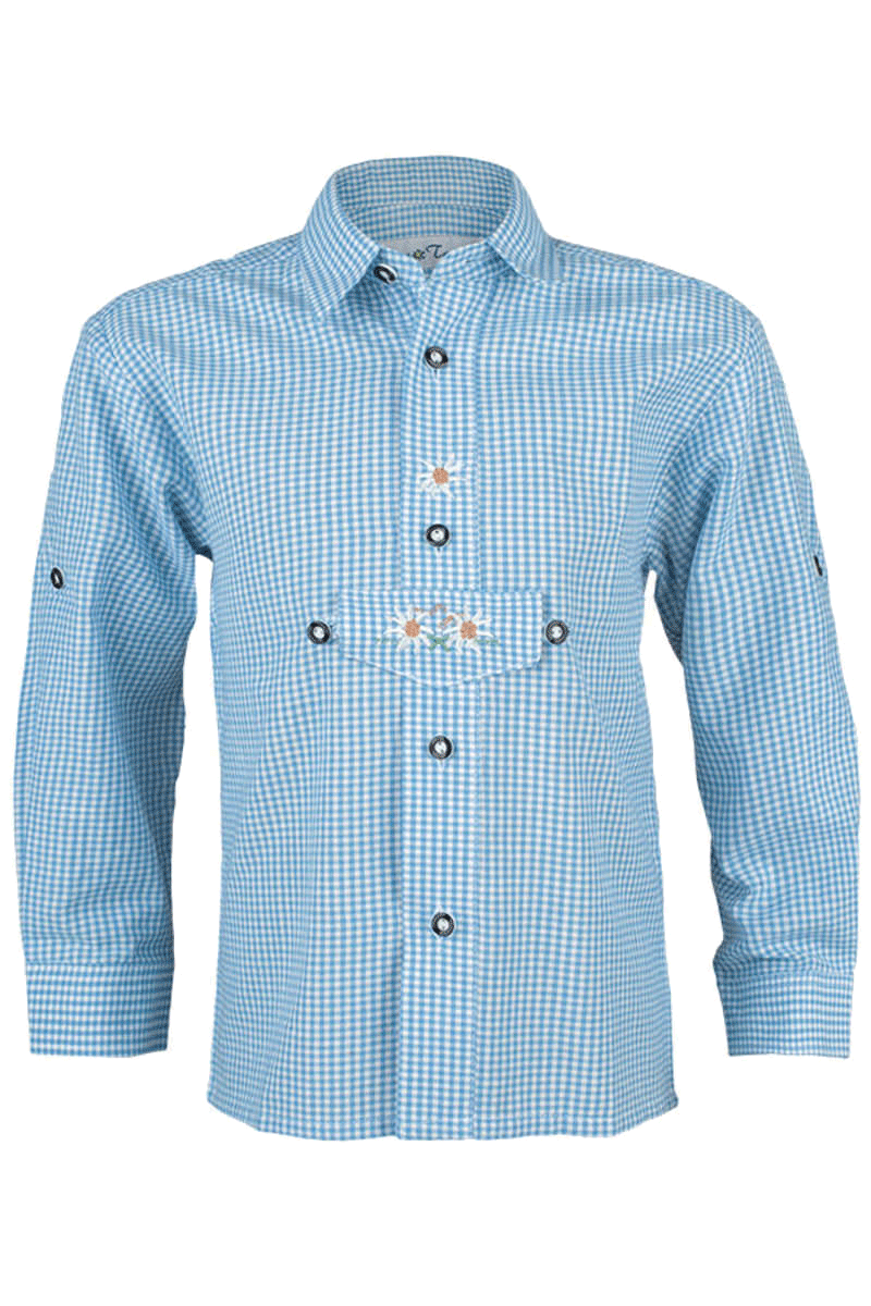 • Süßes hellblaues Kinder Trachtenhemd mit langem Krempelarm