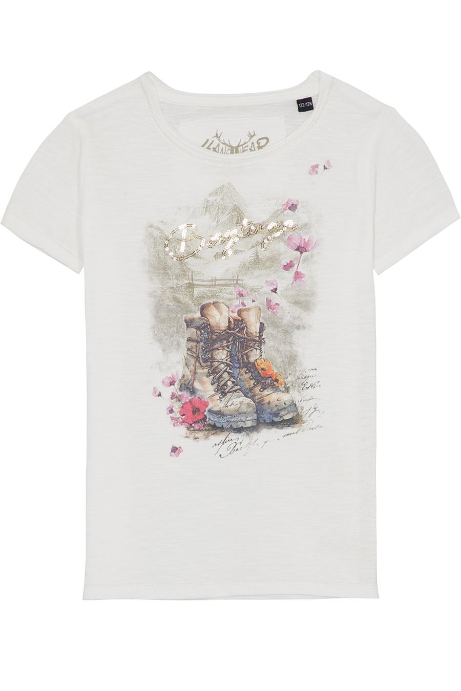 • T-Shirt FAYETTA KIDS von hangOwear – süßes Kinder-Shirt mit Berg- und Blumenmotiv sowie glitzerndem „Bergtage“-Schriftzug aus Pailletten.