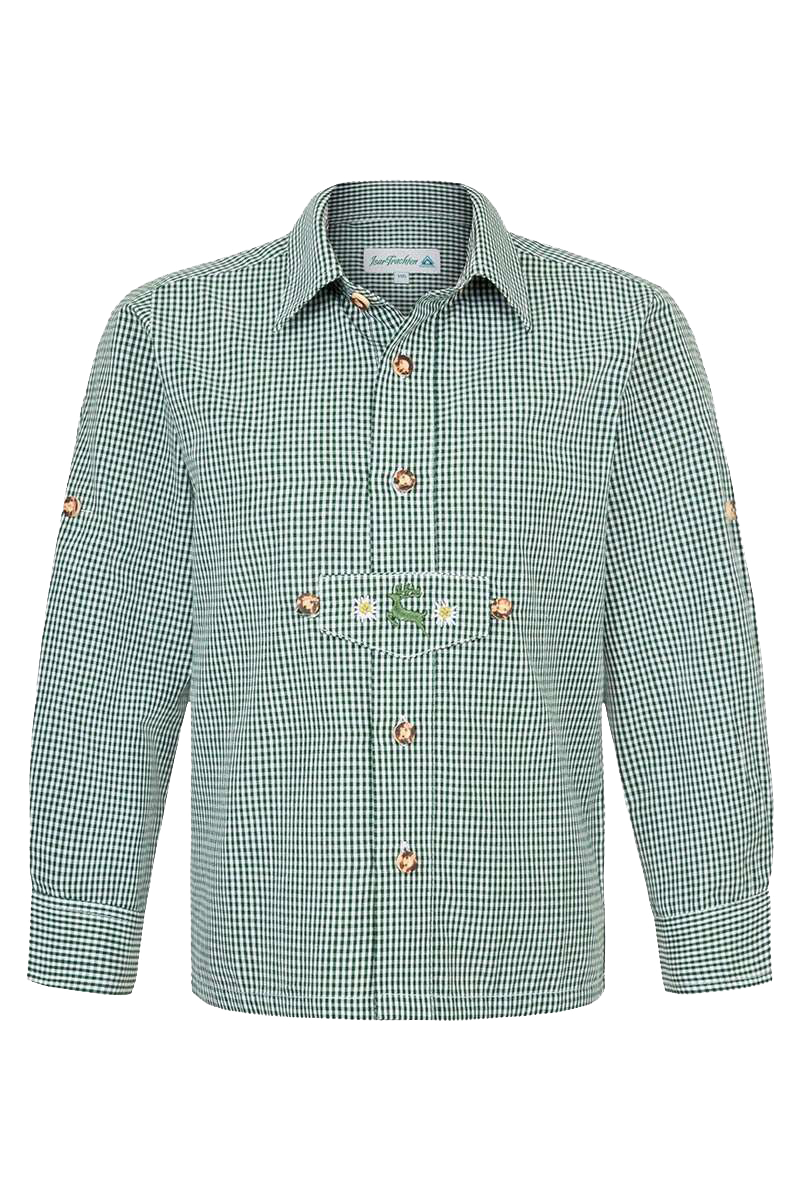 - Kinder Trachten Hemd mit Pfoad und Stickerei kariert