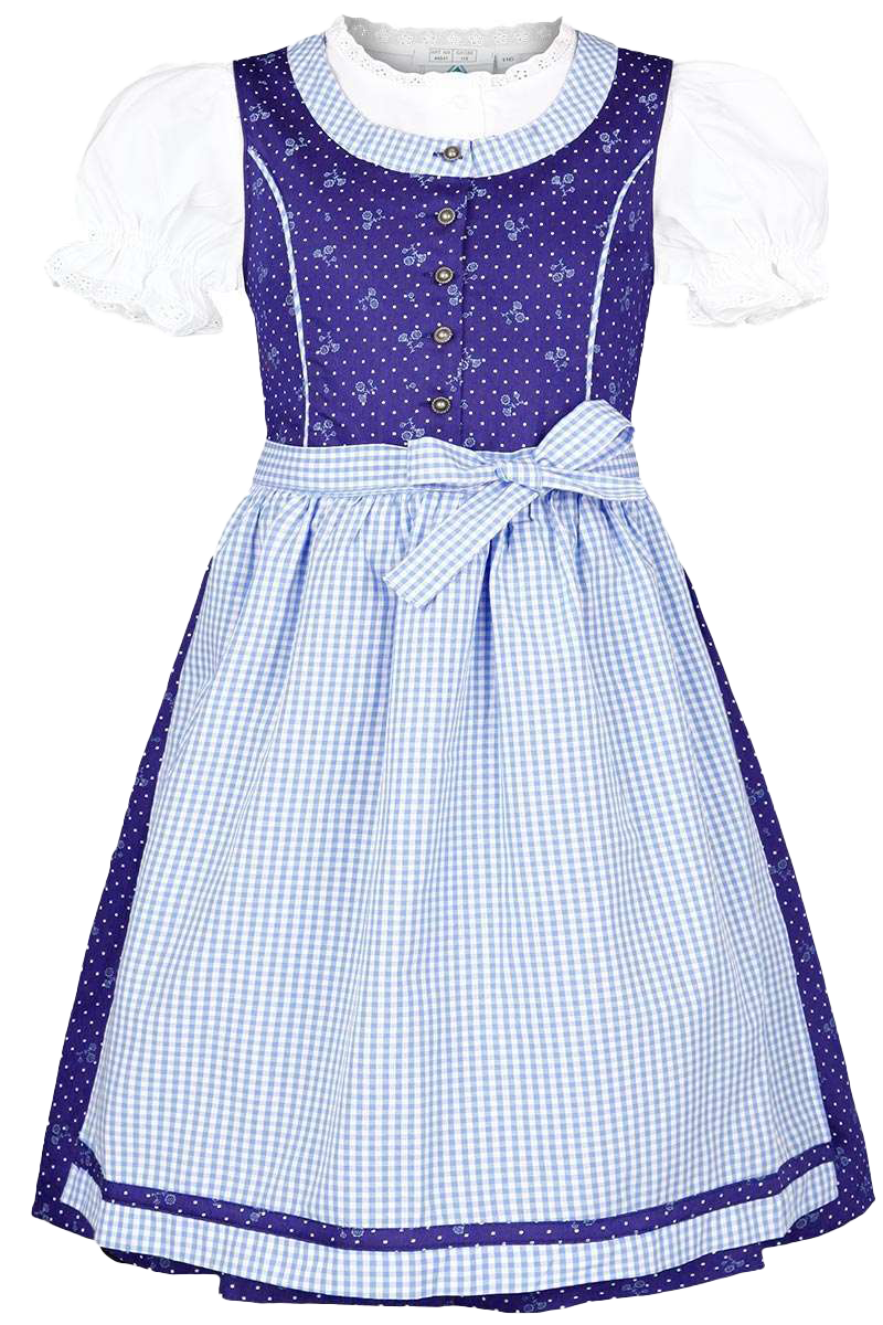 • Fesches, dunkelblaues Mädchendirndl, komplett mit karierter Schürze und weißer Bluse