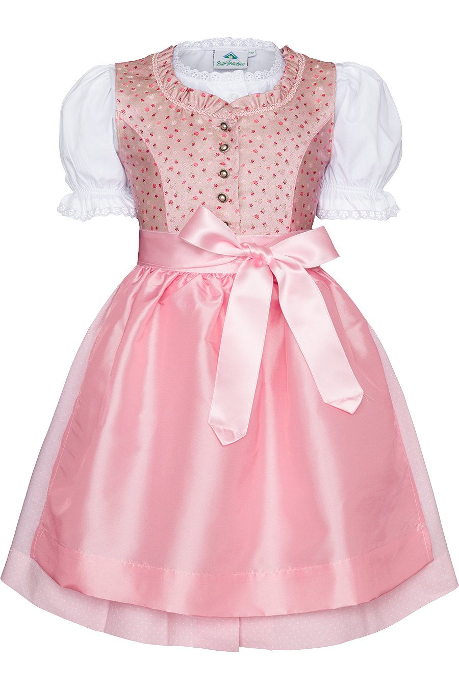 • Kinderdirndl mit Bluse von Isar-Trachten, Oberteil mit buntem Blumenmuster und süßen Rüschen.