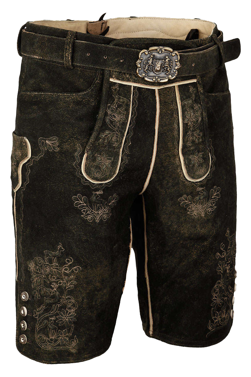 Kurze Herren Lederhose braun mit Gürtel beiger Stickerei