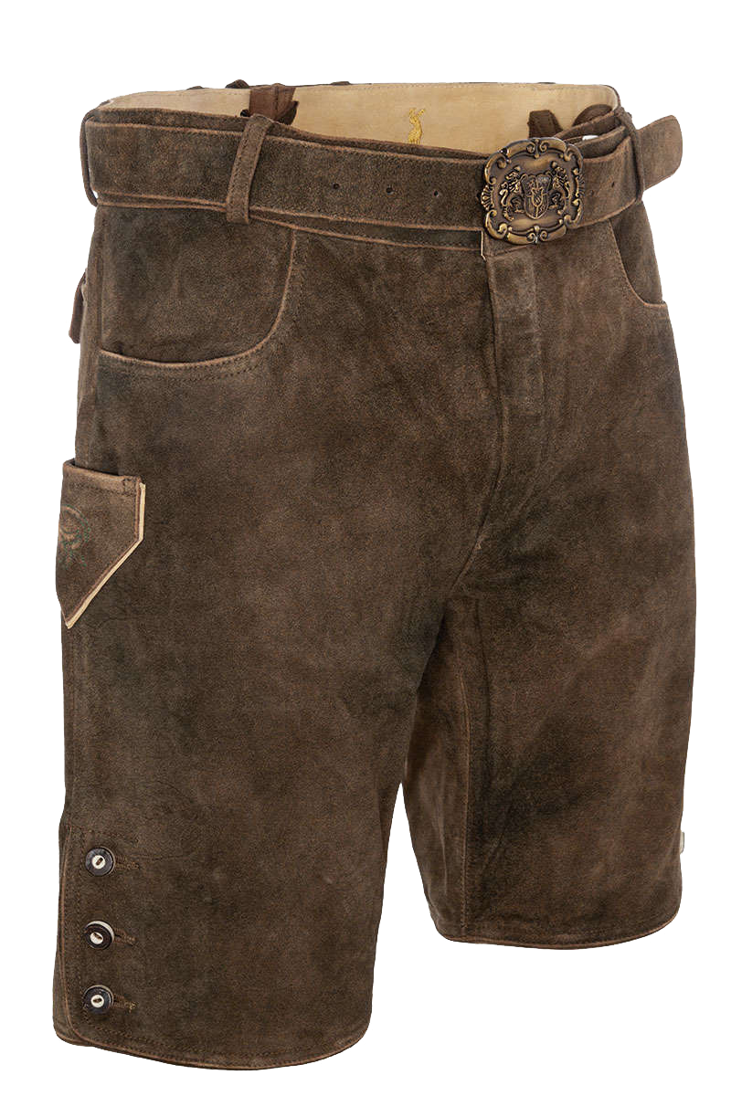 Kurze Herren Lederhose mit Reißverschluss Gürtel mit Bayernwappen