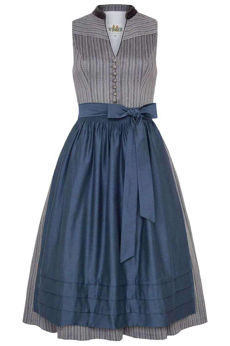 • CARMEN ist ein elegantes hochwertiges Dirndl mit graublauem Streifenmuster