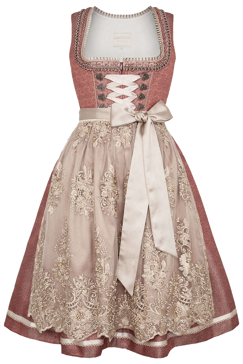 Midi-Dirndl mit Perlen-Stickerei-Schürze altrosa