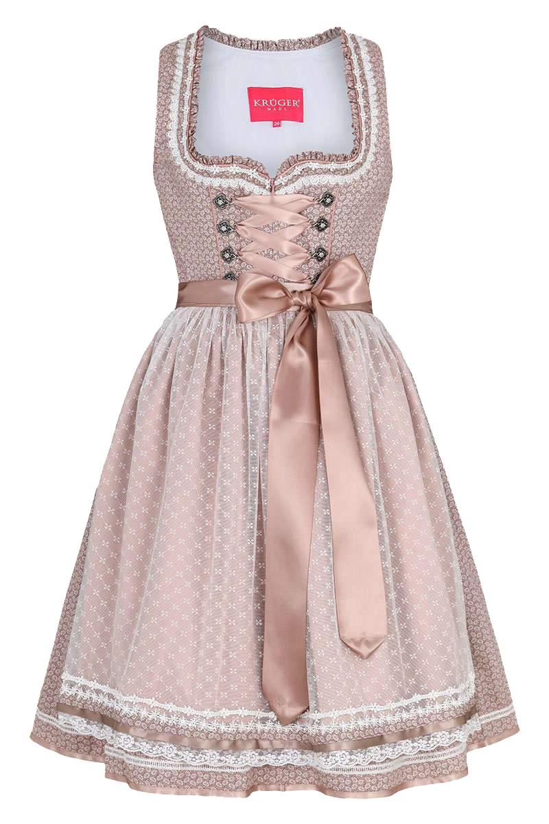 • Ein traumhaftes, tief geschnittenes Dirndl in Altrosa und 60 cm Rocklänge