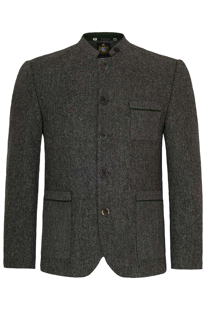 • Echte Hornknöpfe und dunkelgrüne Nähte: Die Verwendung von echten Hornknöpfen und dunkelgrünen Nähten am Stehkragen und an den Taschen verleiht dem Janker einen eleganten und hochwertigen Look.