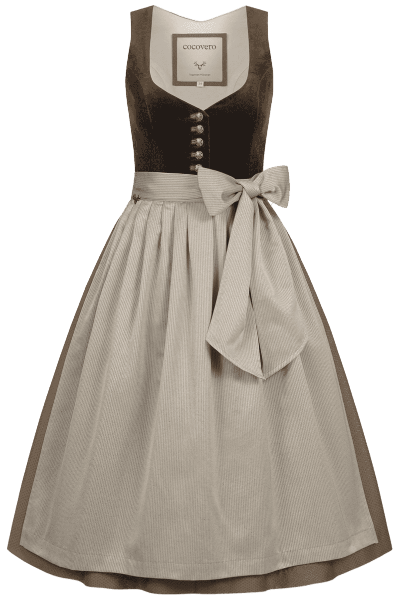 • Die dezent gestreifte Dirndlschürze und das breite Schürzenband, das zu einer schönen großen Schleife gebunden werden kann, machen das CocoVero Dirndl unverwechselbar