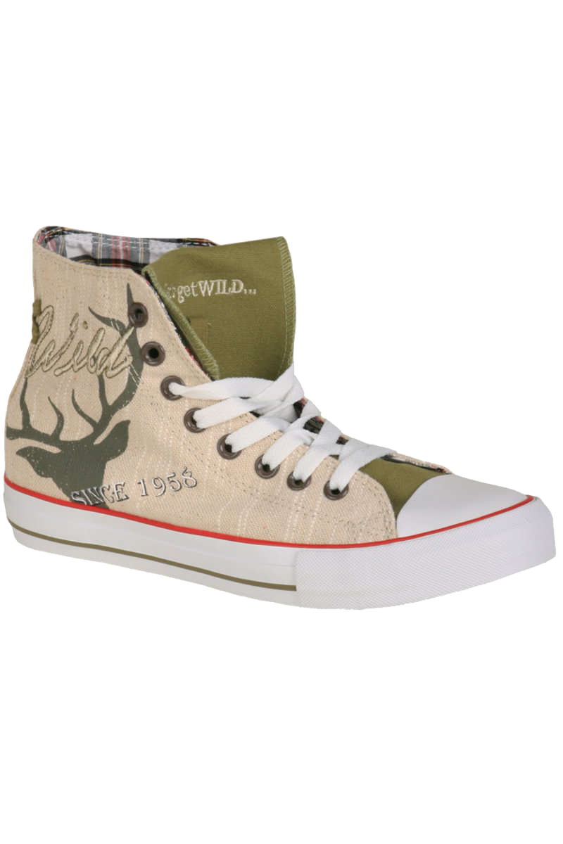 • Die Schuhoberkante kann umgeklappt werden und man sieht das freche oliv-karierte Innenfutter