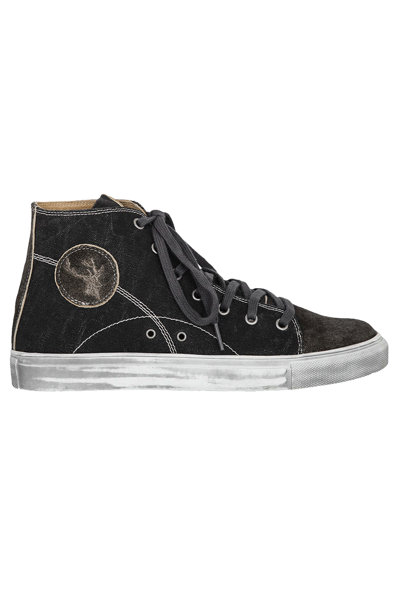 Trachten Leder-Sneaker mit Leinenoptik hoch