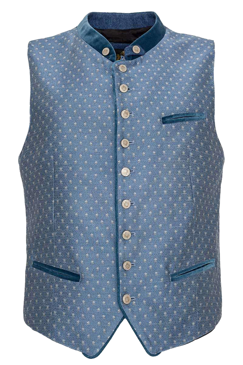 - Johann ist eine schicke blaue Trachtenweste mit kleinteiligem Blumenmuster