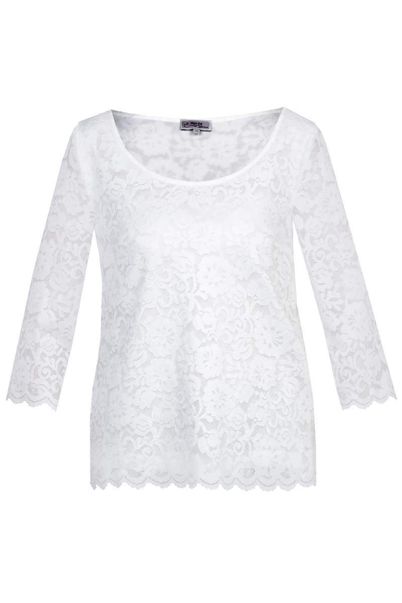 Trachtenbluse Blusenshirt mit Spitze und 3/4-Arm