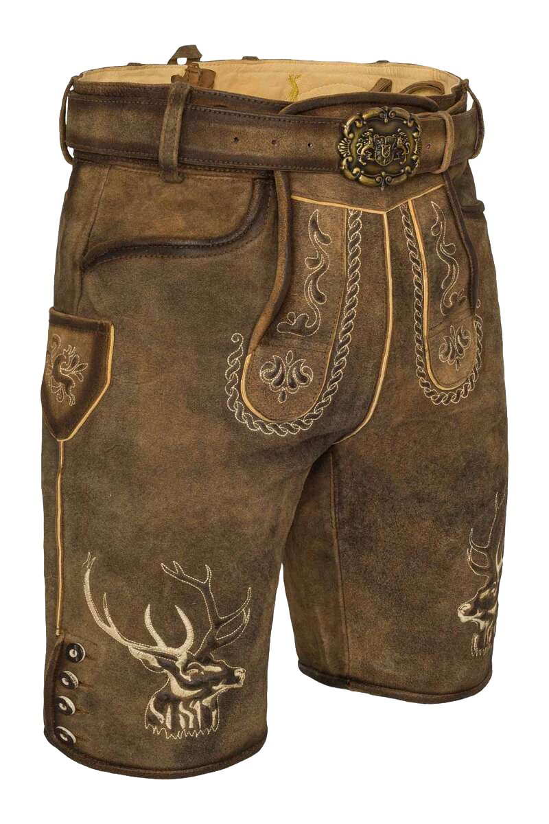 Trachtenlederhose Herren kurz mit Hirschkopf-Stickerei