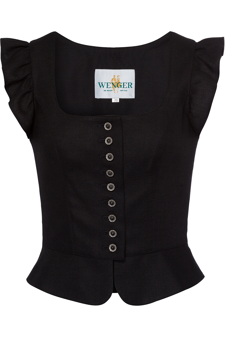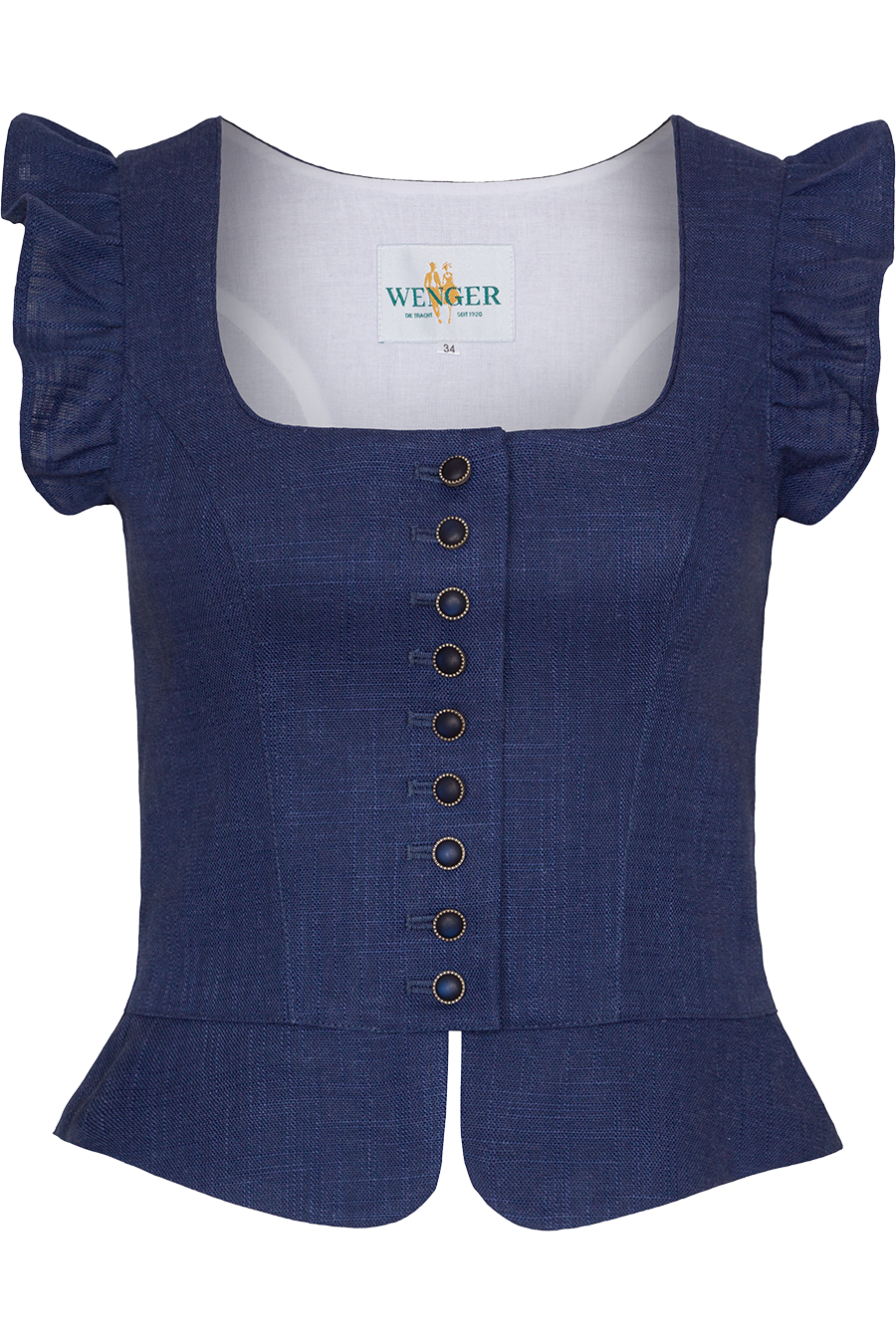 • Trachtenmieder von Wenger mit edlem Materialmix au unter anderem Leinen und Viskose, gefüttert mit reiner Baumwolle.