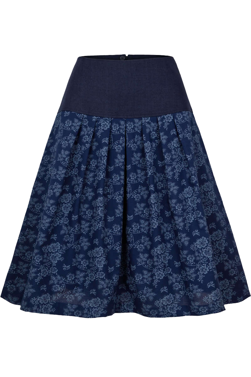 • Schicker Trachtenrock mit breiten Bund mit Streublümchen