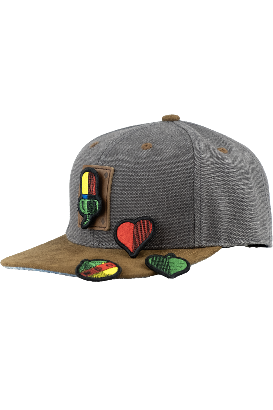 • Schafkopf Transformer Cap von Bavarian Caps – mit austauschbaren Patches der Schafkopf-Symbole: Eichel, Gras, Herz und Schelln.