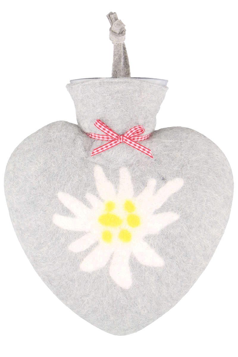 Wollfilz-Wärmflasche in Herzform Edelweiss