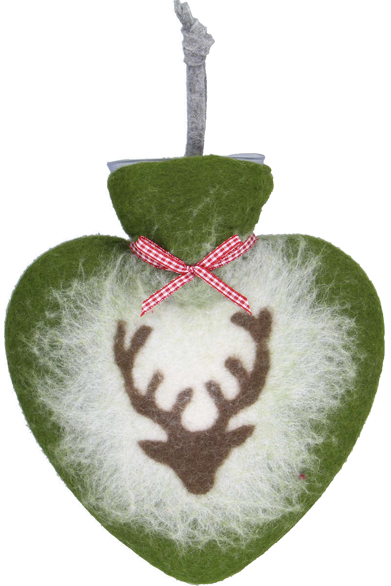 Wollfilz-Wärmflasche in Herzform Hirschkopf