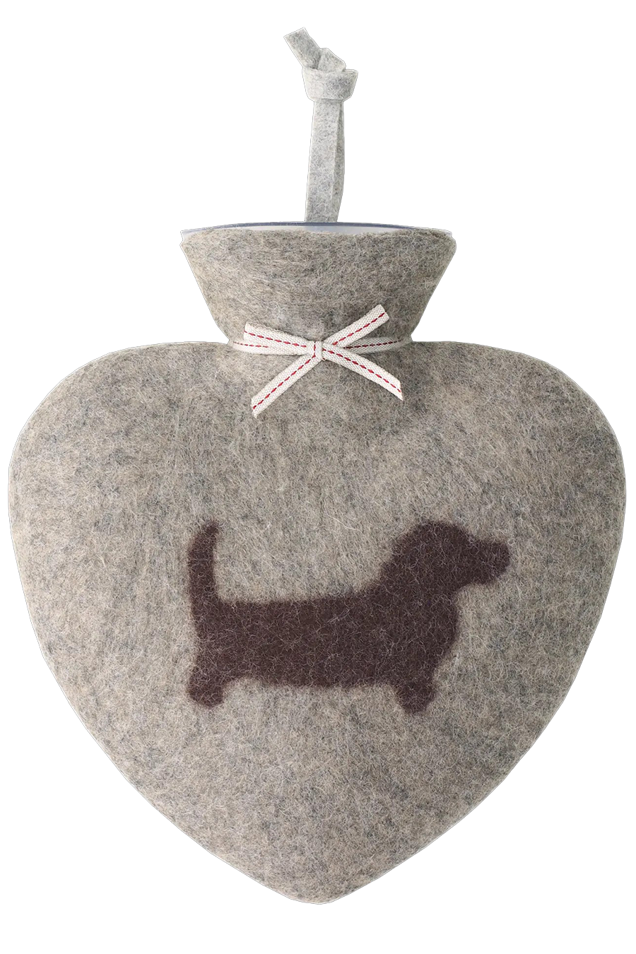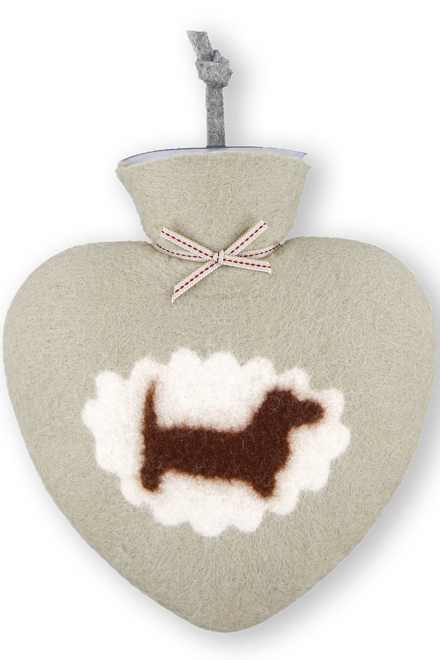 Wollfilz-Wärmflasche in Herzform mit Dackelmotiv