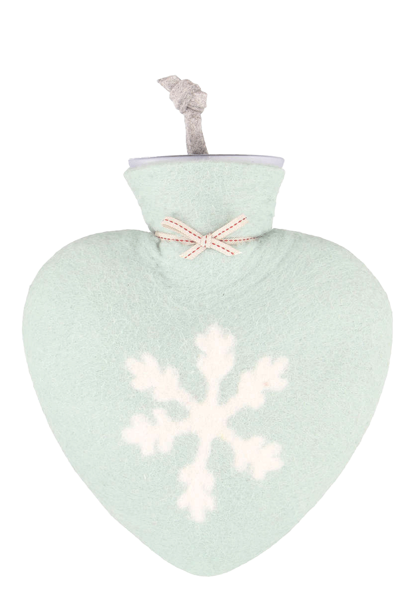 Wollfilz-Wärmflasche in Herzform mit Schneemann